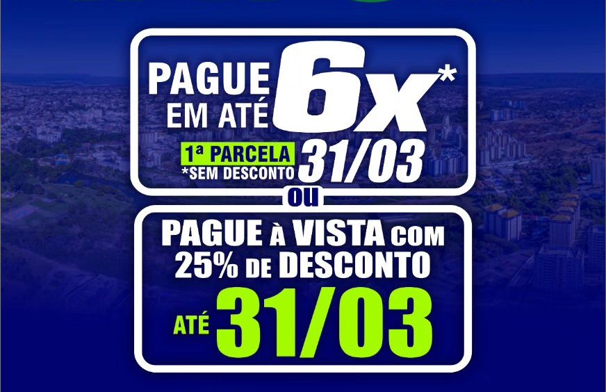 Já para pagamento parcelado, o valor ser desconto pode ser dividido em até 6 vezes, sem desconto, com vencimentos sempre no último dia, de março a agosto de 2026.